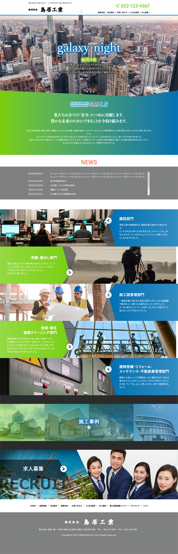 ページ数はトップページ以下、業務内容、会社案内、お問い合わせ、よくある質問の5ページをコーディングしています。